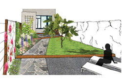 Deze stadstuin is een waar lijnenspel van paden en niveau-verschillen. De ontstane vakken hebben ieder hun eigen functie, zoals terras, moestuin en bloemenborder. Alle beplanting is nieuw aangeplant en moet nog zijn ware formaat krijgen maar het toont al redelijk. Door middel van een uitgebreide workshop is met de opdrachtgever de gewenste uitstraling bepaald. Het mocht een abstract ontwerp worden, met waar mogelijk, hergebruik van materialen. Zo is er een prachtig pad van omgekeerde en kapot geslagen grindtegels in het ontwerp opgenomen.